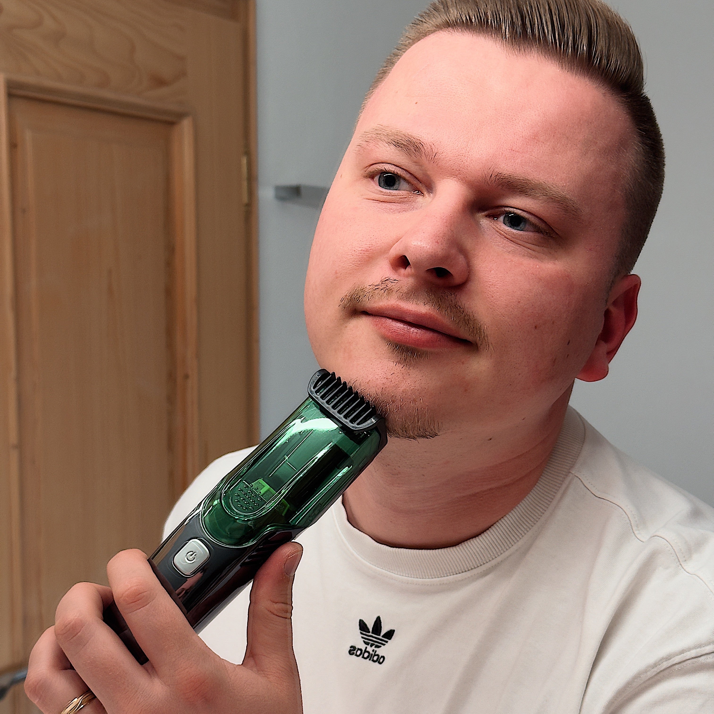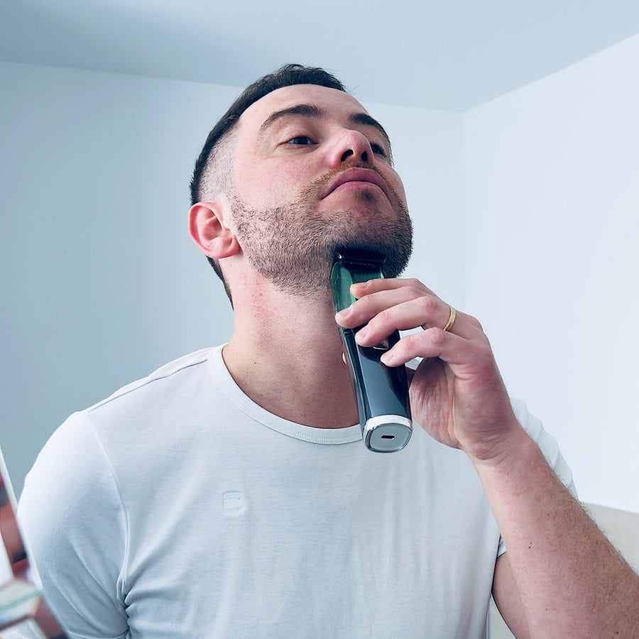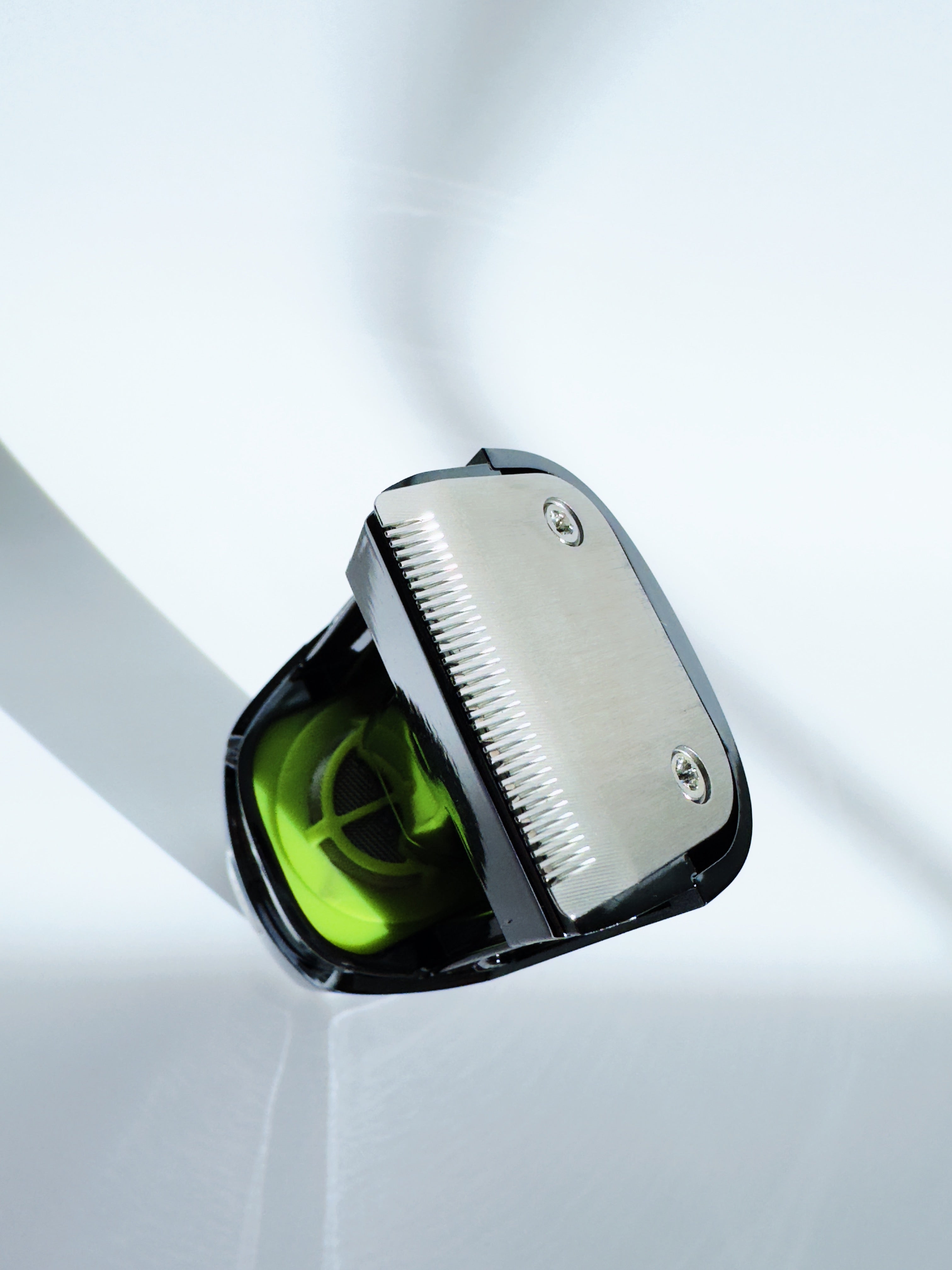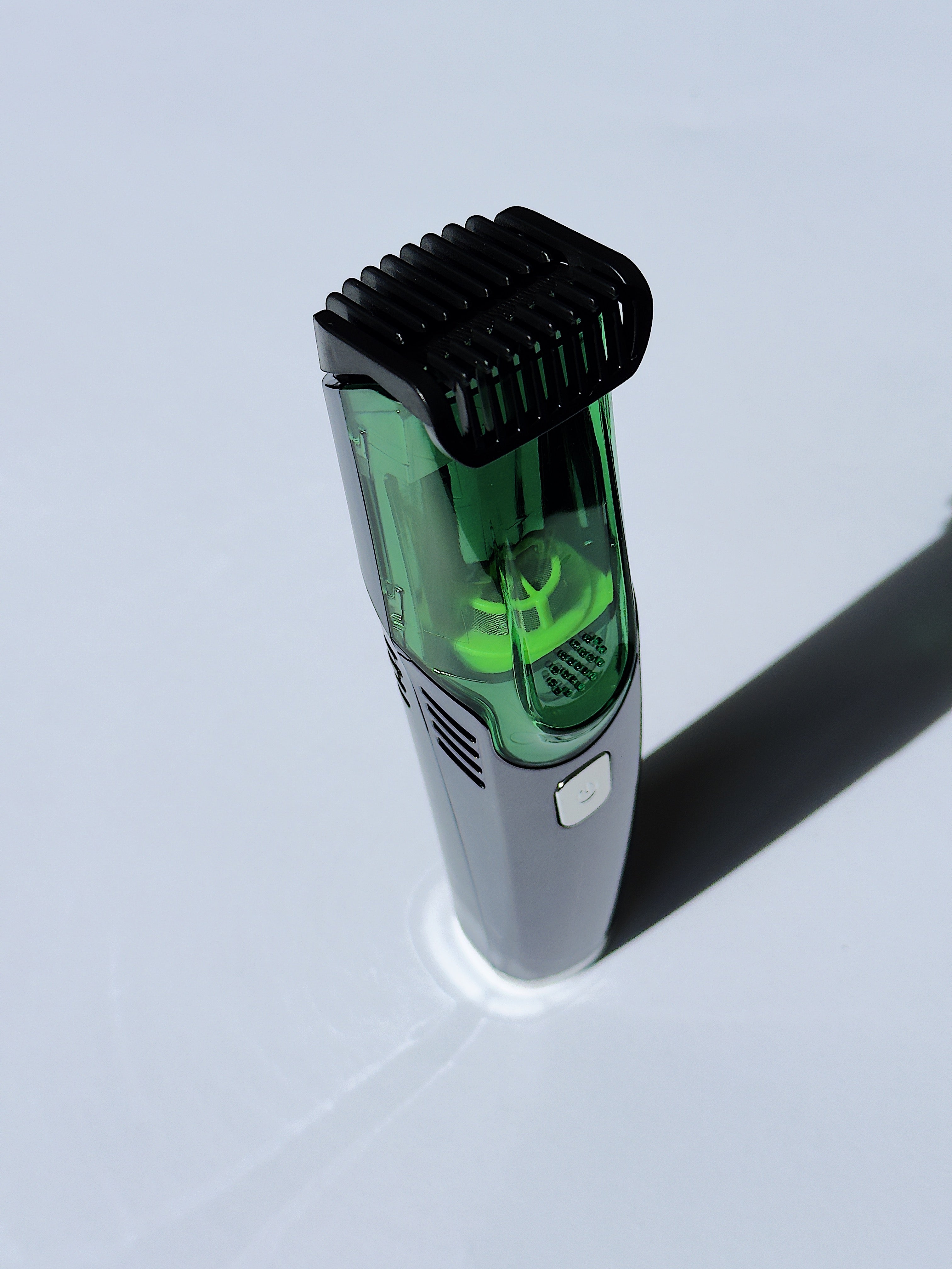 Der leistungsstarke Trimmer sorgt für eine gleichmäßige, präzise Rasur – ganz ohne Hautirritationen. Dank integrierter Vakuum-Technologie werden die Haare direkt beim Schneiden eingesaugt. So bleibt dein Bad sauber und dein Look on point – jeden Tag.