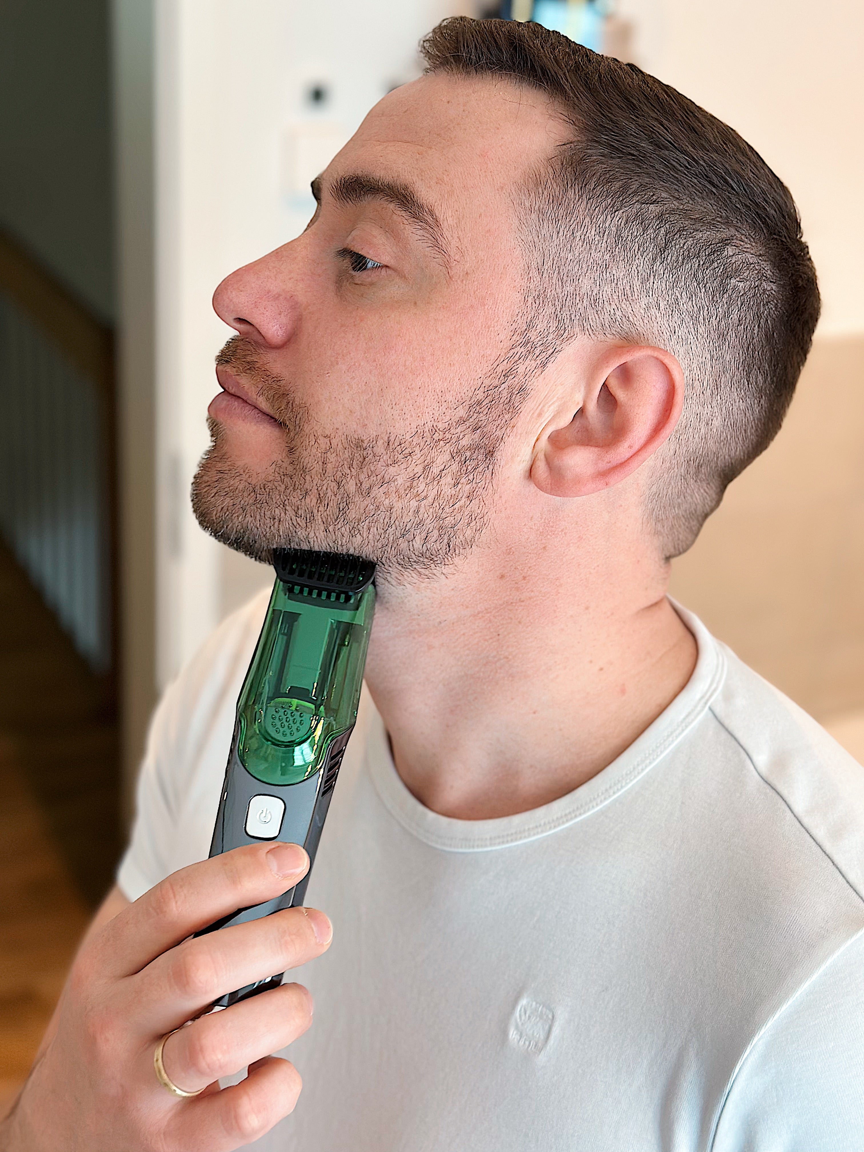 Der SmartTrim ist der erste Barttrimmer mit einer leistungsstarken Vakuum-Technologie, die bis zu 95 % der Barthaare direkt einsaugt, während du dich rasierst.