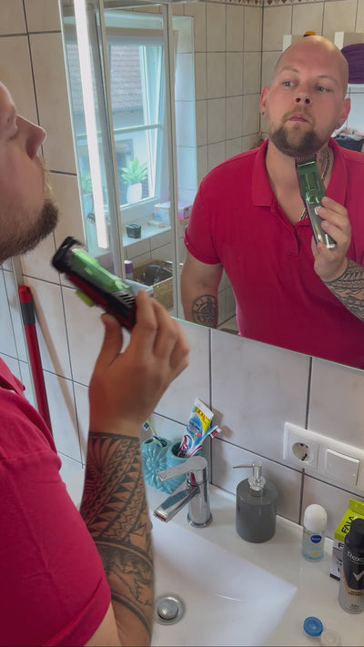 Das bedeutet: Keine Haare im Waschbecken, keine Reinigung danach, kein Stress. Trimme deinen Bart in Rekordzeit, genieße eine präzise Rasur und starte perfekt gepflegt in den Tag – ganz ohne Chaos.